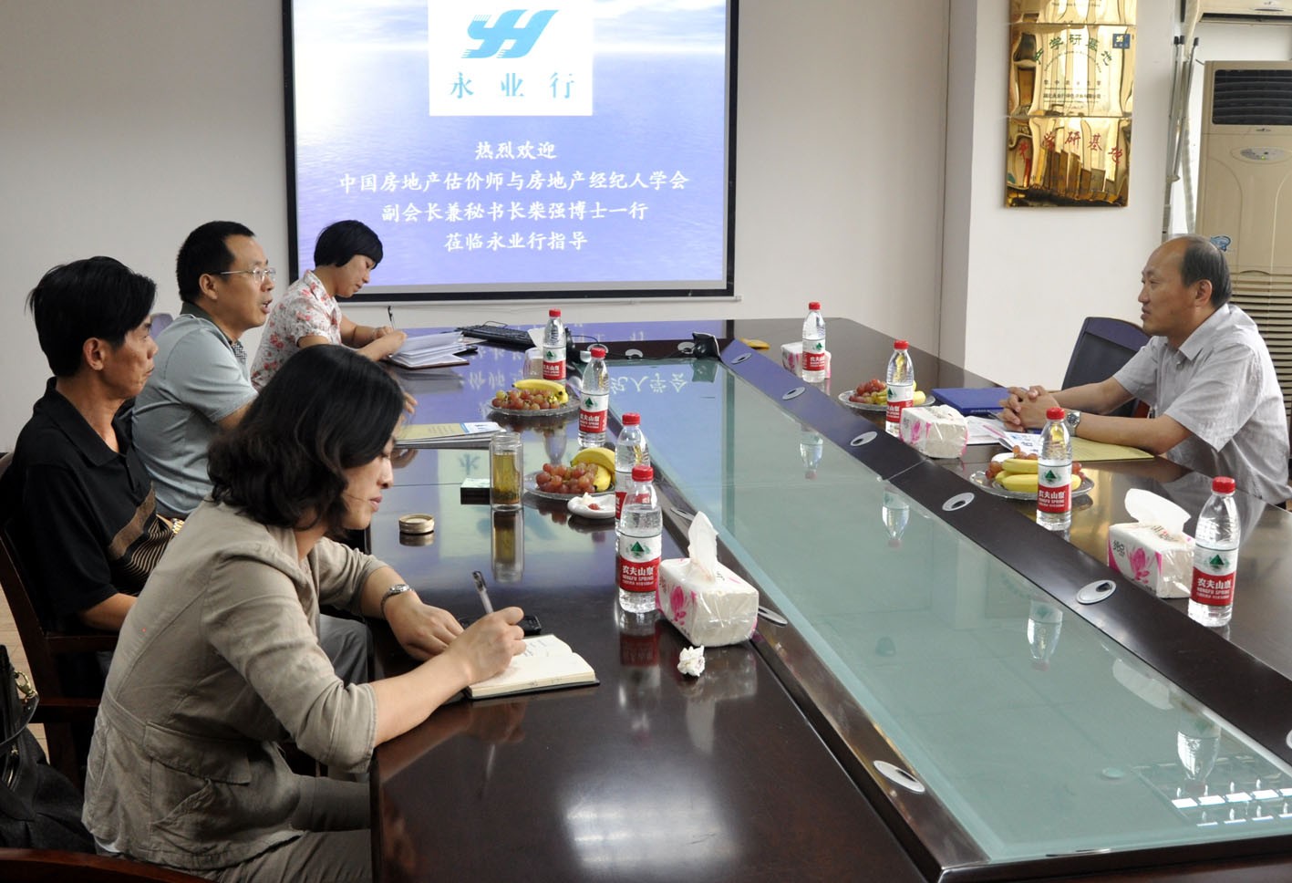 2012年7月11日,长江水利委员会领导莅临永业行交流工作 2012-07-11   7月11日,长江水利委员会(简称“长委”)机关财务局丁自力处长、魏波科长莅临永业行考察交流。 房地产评估二部副总经理何才丽、经理涂晶、助理经理艾妮热情接待了丁处长一行。丁处长、魏科长观看了永业行专题片,何总就内部资产核定资产量这一项目相关技术方案作了汇报,双方就该项目的评估范围和技术方法进行了细致交流。丁处长对永业行技术人员前期开展的调查工作及制定的项目方案表示充分肯定,并表示希望与永业行进一步拓宽业务合作领域。   MORE